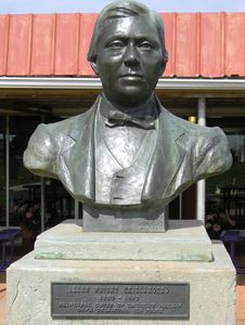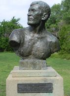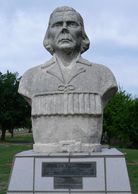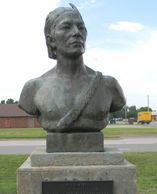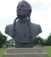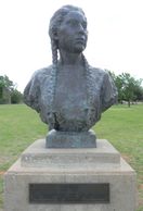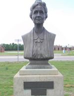 As you approach the center, the sculpture on your left, beside that of Logan Billingsley, you will see a likeness of artist Betty Butts. Ms. Butts is honored for her continued interested in the Hall of Fame . Butts was a nationally-known artist, exhibiting her works across the US. On August 23, 1992, her fifth portrait in bronze, that of Chief Sitting Bull, was dedicated to the Hall of Fame.