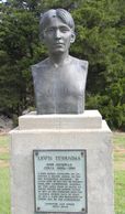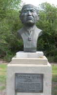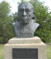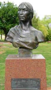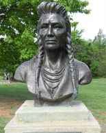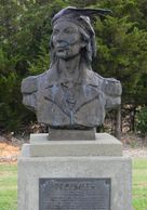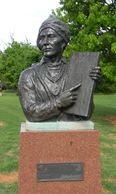 As you exit the museum building, take the path to the right. The first bust is that of Simon Ralph Walkingstick Sr., (Saw-one-oo-dov-larner-ste) who was born May 8, 1868 in the Goingsnake District, Indian Territory (I.T.) and was orphaned in his early life. He was Old Settler, East and West of the Mississippi and Western Settler Cherokee.